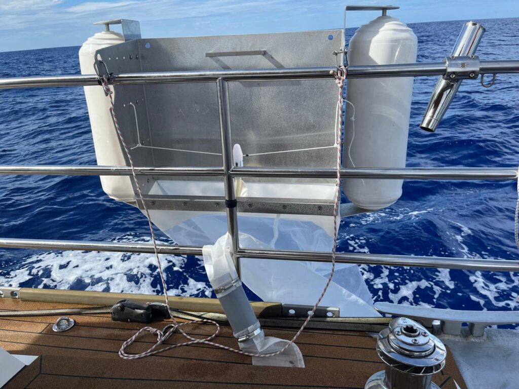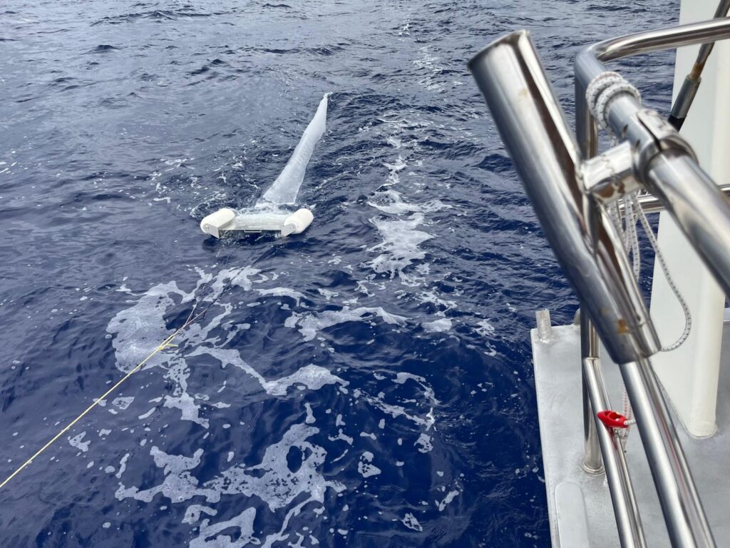 We continue north with a day’s stop in the beautiful lagoon of TOAU, then head for Hiva oa for the boarding of Clara and the delivery from the ship that goes once a month to the Marquesas of the new super tender and engine, the old Alcione has aged after 17 years of service, visits to the tombs of Gauguin and Brel and then off to Niku Hiva and off towards the equator, Hawaii. Along the way we installed the Oceaneye detection equipment (nicknamed Manta) and collected the first sample, with the new protocols, we collected the second as soon as we left for Hawaii north of Nuku Hiva.