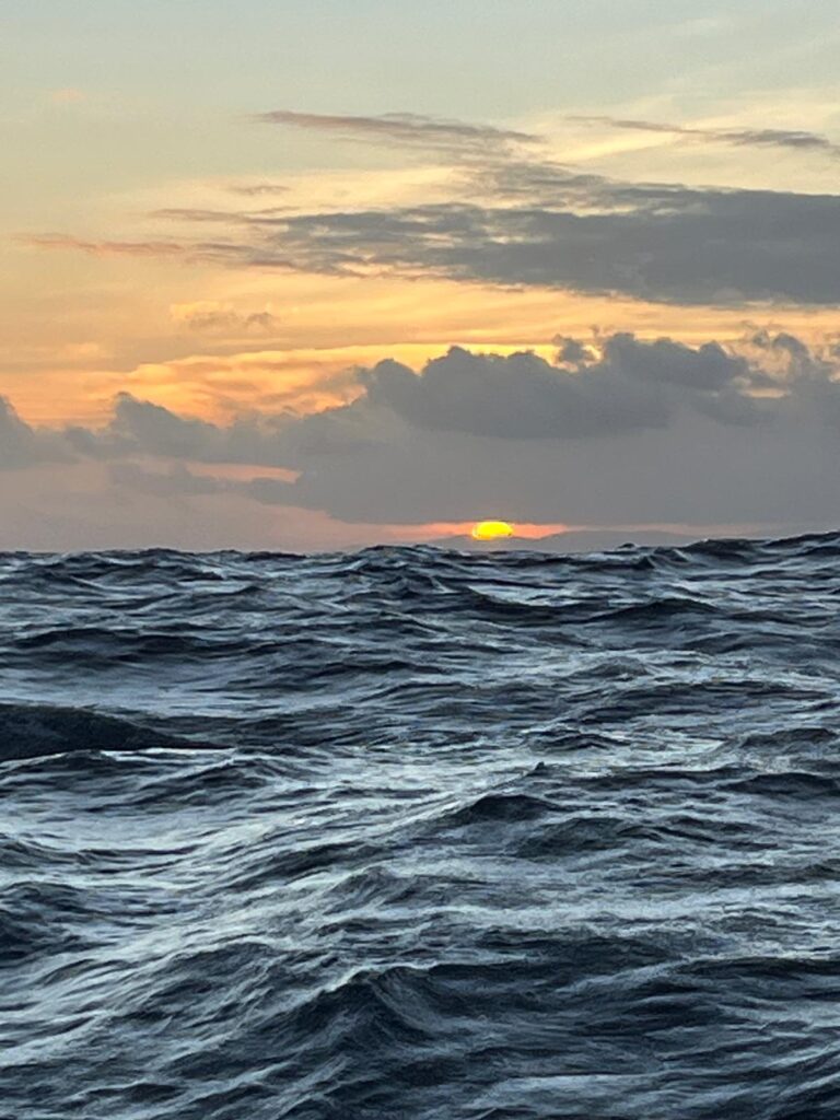 Proseguiamo verso nord con un giorno di sosta nella bella laguna di TOAU, per poi far rotta su Hiva oa per l’imbarco di Clara e la consegna dalla nave che va una volta al mese alle Marchesi del nuovo super tender e motore, il vecchio Alcione è invecchiato dopo 17 anni di servizio, visite alle tombe di Gauguin e Brel e poi via per Niku Hiva e via verso equatore le Hawaii . Nel percorso abbiamo installato l’attrezzatura (soprannominata Manta) di rilevamento Oceaneye ed abbiamo raccolto il primo campione, con i nuovi protocolli, il secondo lo abbiamo raccolto appena partiti per le Hawai a nord di Nuku Hiva.