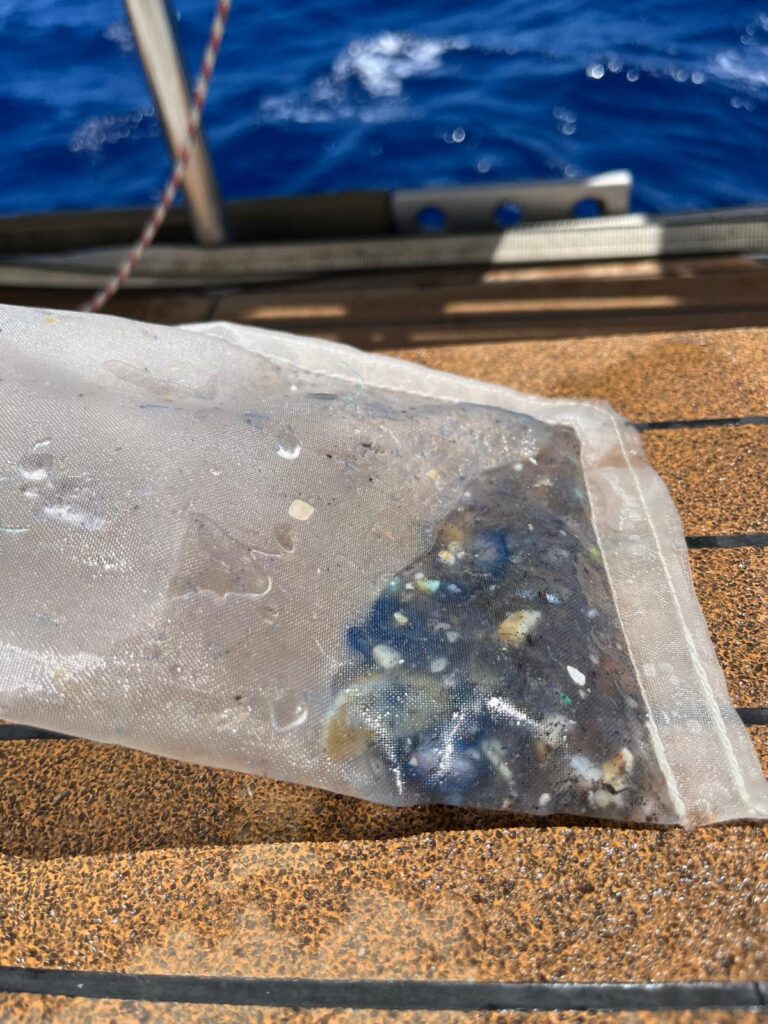 - Aggiramento il lato ovest dell’ anticiclone Nord Pacifico, con venti calanti in rotazione verso sud ovest, e successivamente nella parte superiore a nord ovest. E’ in questa rotazione oraria che gira la maggior parte della plastica scaricata dalle economie est asiatico e ovest nord america, si accumula negli anni in un sistema la cui evidenza (plastiche visibili e contenuto di miciro e mesoplastiche solo visivo/ photo 5-6 , nel campione da noi raccolto per il laboratorio Oceaneye) ci porta ad allargare le considerazioni sino ad ora fatte: la dimensione di questa altissima concentrazione ha, per dare un idea, la superficie dell’Africa intera. I campioni raccolti ed i report del protocollo Oceaneye verranno inviati nei laboratori di Ginevra per le analisi, e noi siamo fieri di essere in questa area per primi, apprezzando il grande lavoro che fa questa organizzazione. Oceaneye crea dati attendibili per coloro che potrebbero fare qualcosa per migliorare: una piccola organizzazione scientifica che crea e fornisce dati di grande valore, come riconosciuto anche dal Noaa https://www.ncei.noaa.gov/news/new-oceaneye-partnership-brings-expansion-microplastics-database